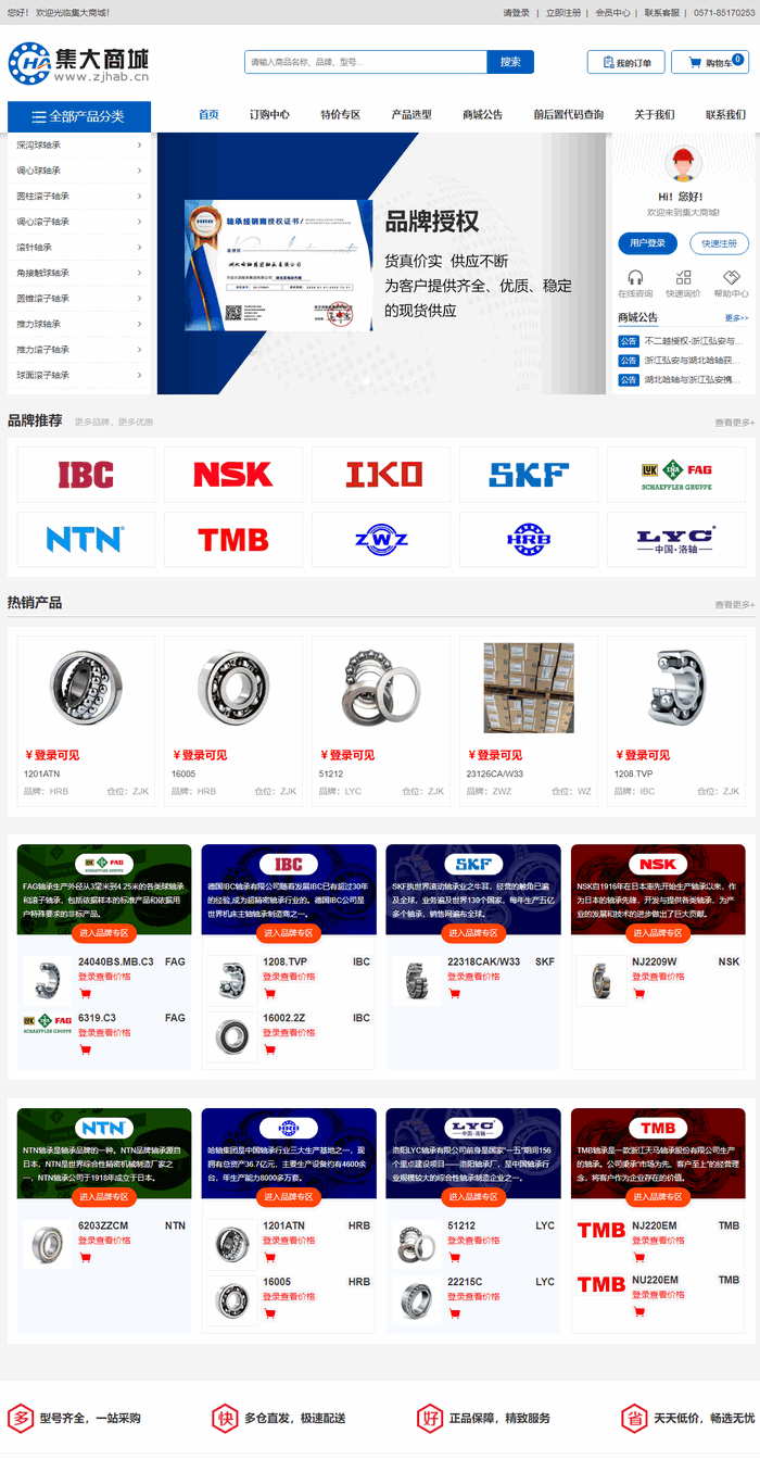 杭州集大轴承商城于2022年4月20日正式上线运营,是一个专注于轴承及工业产品的一站式专业采购平台。